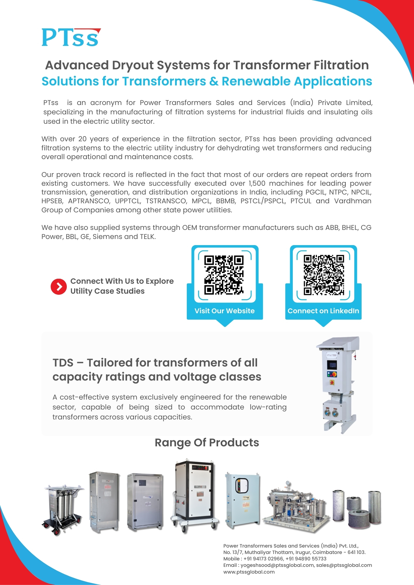 PTss TDS Portable Substation Dryout Systems, Empowering Electric Power Utilities and Industries Across India.