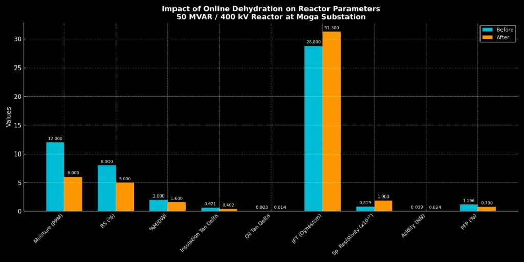 At PTss, we continue to lead the way in preventive maintenance practices for high-voltage equipment. One such milestone was the successful online dehydration of a 50 MVAR/400 kV BHEL Line Reactor at the Moga Substation-a strategic intervention that demonstrated measurable improvements in insulation and oil parameters. Small improvements make great impact.
